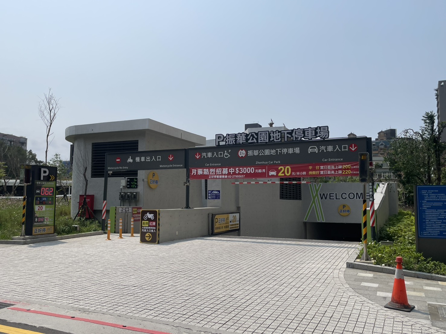 汽車收費:$20元/半小時,平日最高180元/假日最高200元。