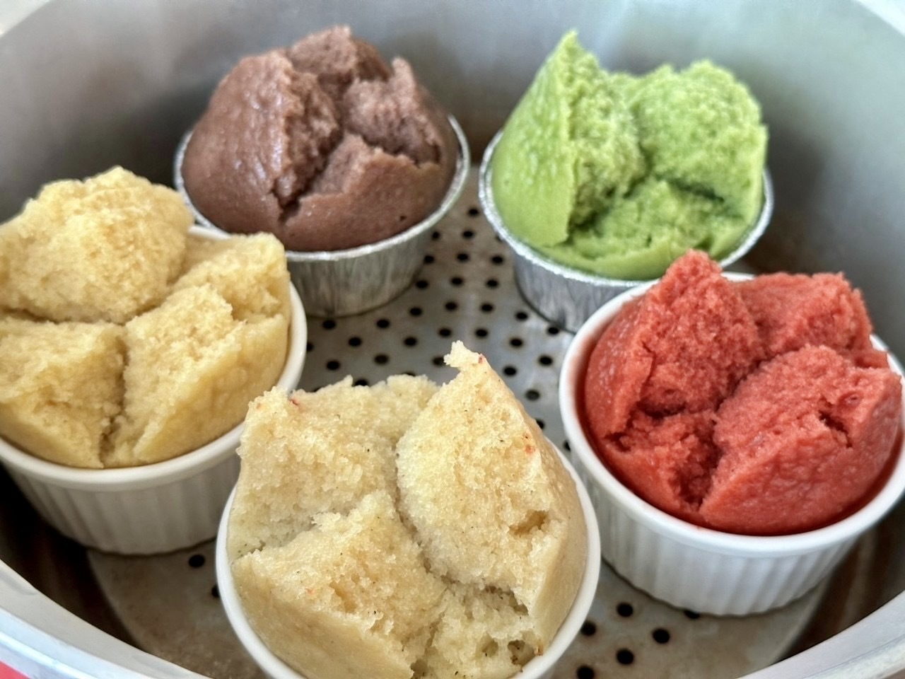 你也可以加入各種天然水果粉,讓發糕更繽紛