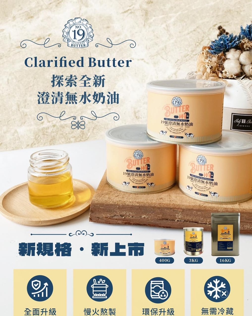比無水奶油更香濃的澄清無水奶油,香氣天然,濃郁持久,帶有奶油焦糖的風味,讓糕點、餅乾香氣更豐富、口感更香酥